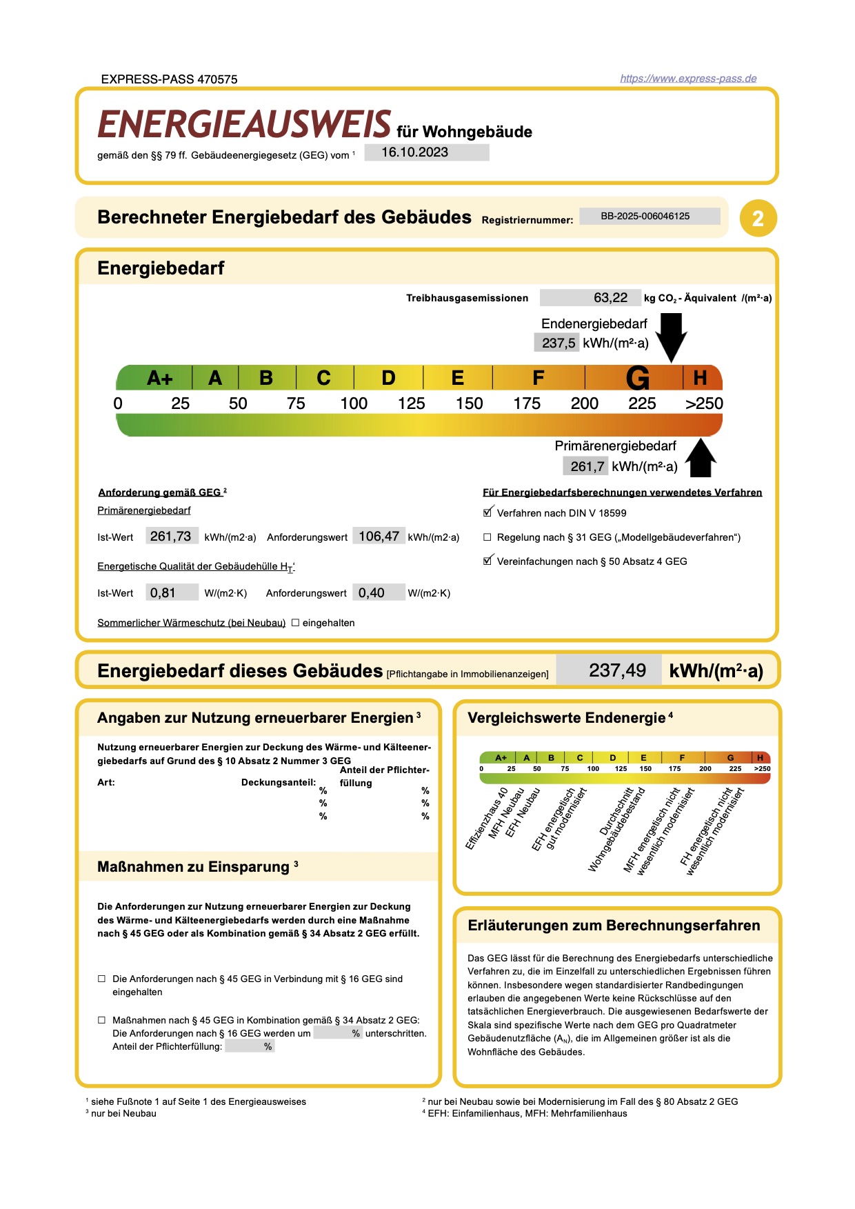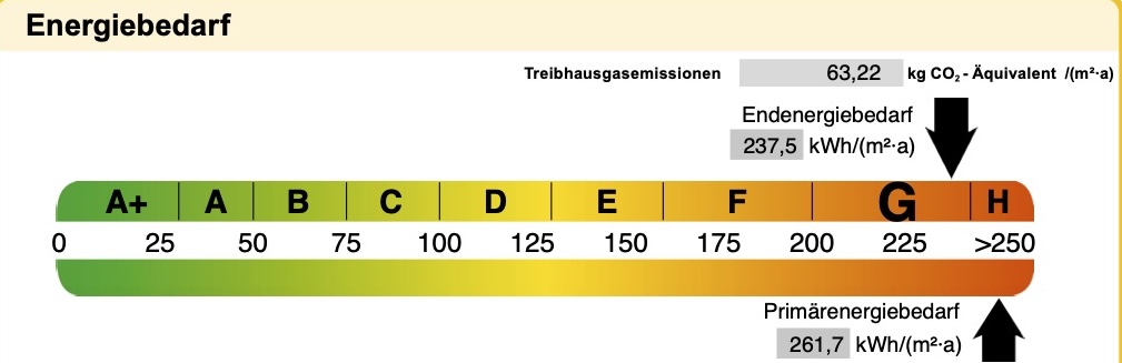 Endenergie­bedarf: 237,5 kWh/(m2·a)