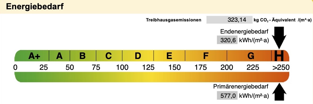 Endenergiebedarf: 320,6 kWh/(m2·a)