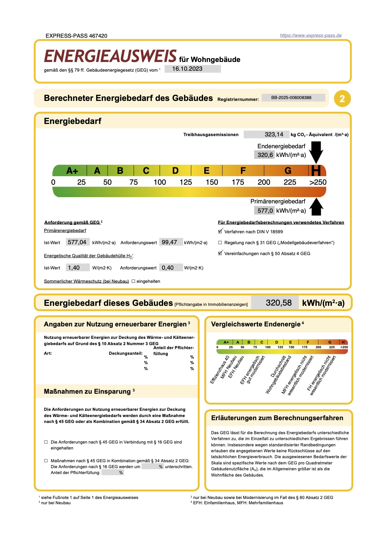 Endenergiebedarf: 320,6 kWh/(m2·a)