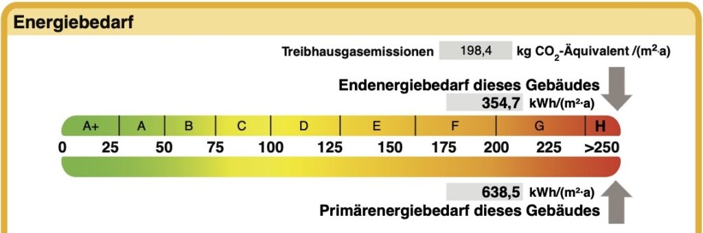 Endenergie­bedarf: 354,7 kWh/(m2·a)